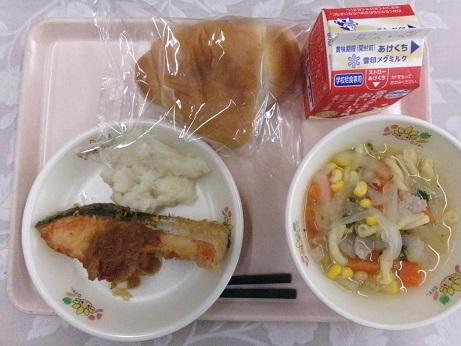 ロールパン 魚のバーベキューソース ミルクポテト パスタスープ
