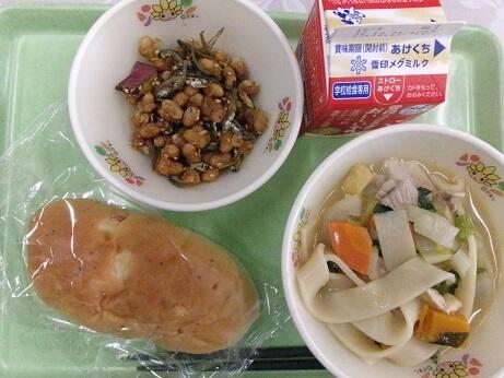 チーズパン ほうとう 大豆と小魚の甘辛 牛乳