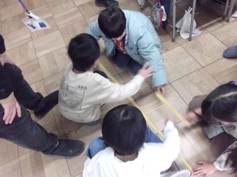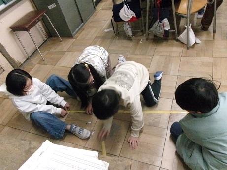 グループで協力して、一人ひとりの「ひろ」は何センチメートルかを測ってみました。