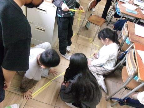 児童は、30cmのものさしをくっつけて、長い長さを測ることに挑戦していました。
