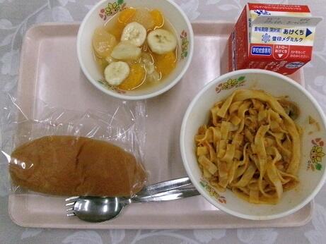 コッペパン スパゲティボロネーゼ フルーツポンチ 牛乳