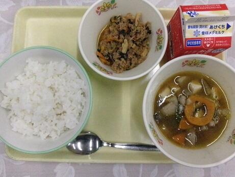 こまツナそぼろ丼(ご飯) けんちん汁 牛乳