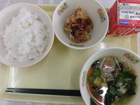 ご飯 牛乳 鶏肉の甘辛に すまし汁
