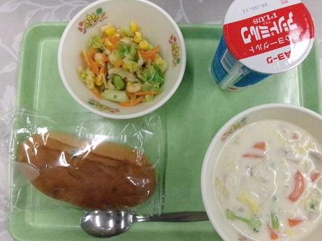 ぶどうパン 冬野菜のミルク煮 豆サラダ 発酵乳