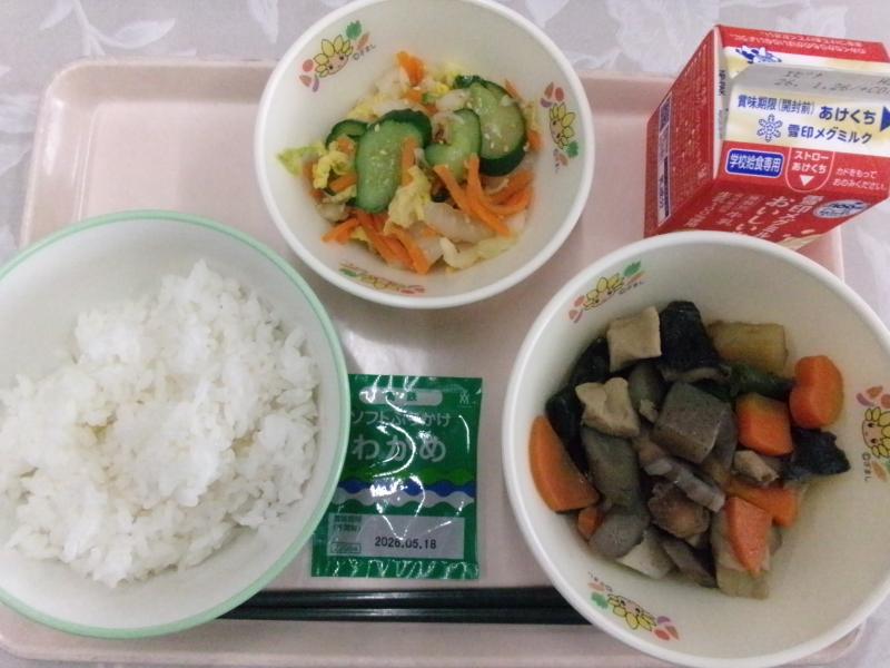 ご飯 切り干し大根の炒め煮 すまし汁 魚の西京焼き 牛乳