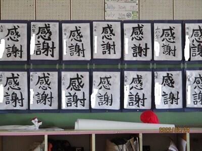 6年生の教室には「感謝」の習字が貼られています。筆を走らせる時、何を思って、誰を思っていたのか… 今度聞いてみようと思います。