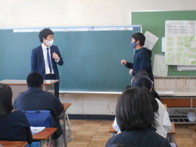3月11日(金)5校時目に、相模中から3人の先生がいらしてくださいました。6年生に「出前授業」をするために、相模が丘小学校まできてくださいました。