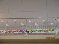 体育館には、1年生から5年生までの絵、カルタなどの作品が飾られています。体育館の壁面はとても華やかなになりました。当日は、紅白幕、生花、プランターの花道に飾られて、6年生の門出に相応しい式場となることでしょう。明日は5年生が、3,4校時に体育館の大清掃、そして卒業式の準備をしてくれます。