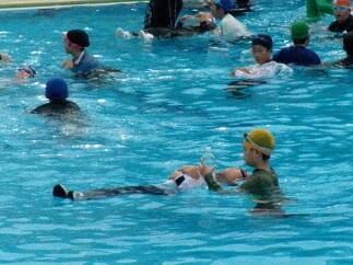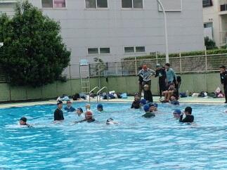 着衣だと泳ぎにくい、動きにくいことを体験した後、