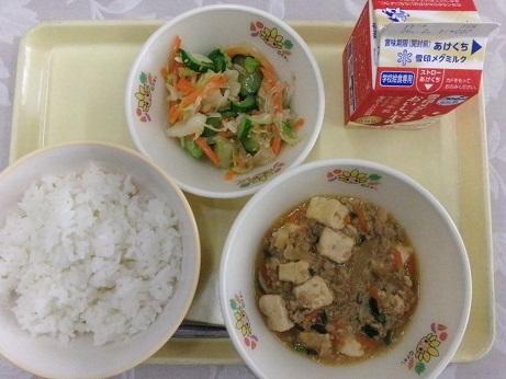 ご飯 麻婆豆腐 中華サラダ 牛乳