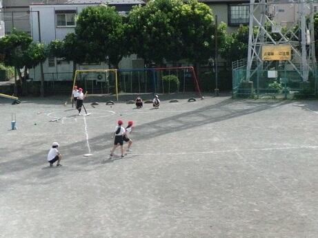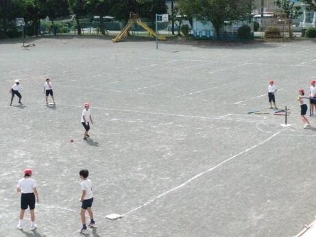 こちらは昨日の校庭。6年生は体育でTボールに挑戦中です。