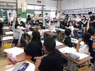 考えを書き込む時は、一人ひとり集中して行い、ペアで意見交流をする時、全体で共有する時には活発に話しあい、最後には自分達で話し合いを進めていく姿も見せてくれました!