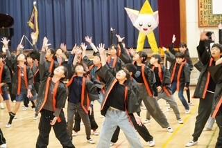 5年生。相模が丘応援団と「ひゅるりらぱっぱ」の創作舞踊。