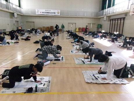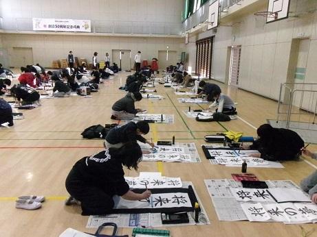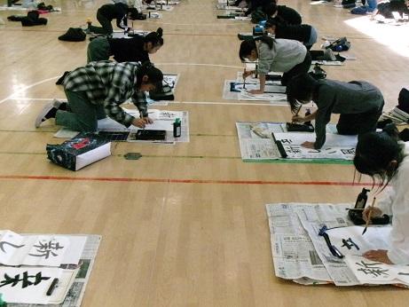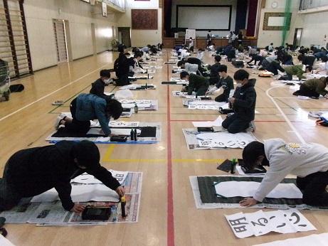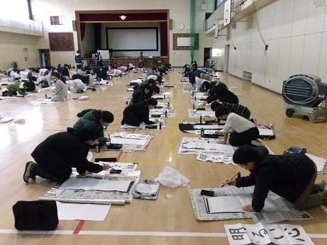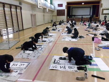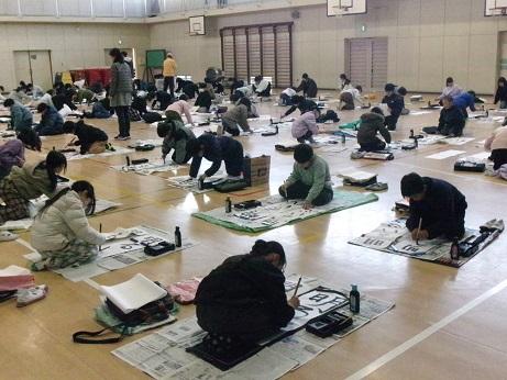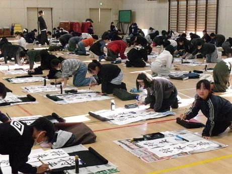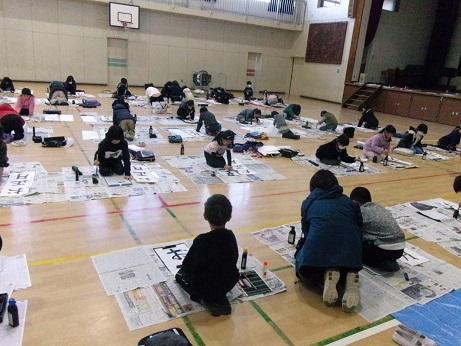 3年生以上は、体育館で毛筆の書き初めを行いました。
