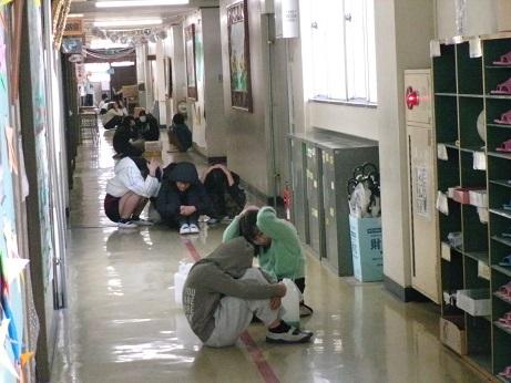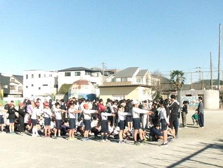 校庭でも、真ん中に集まってしゃがんでいる姿が見られました。