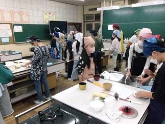 5年1組、2組がお味噌汁の調理実習を行いました。
