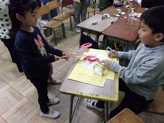 2年生が1年生を喜ばせるため、おもちゃやゲームを考え、制作し、ルールの説明も考えました!