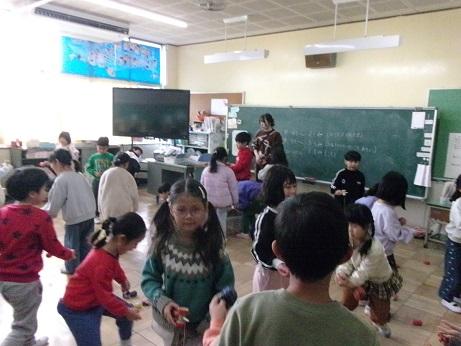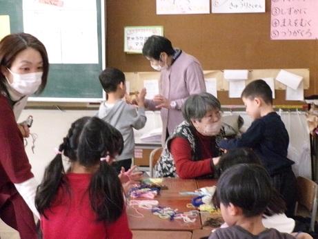 あやとり、お手玉、だるまおとし、けんだま、ベーゴマ・・・それににょろにょろしたもの?が飛び出てくるビックリ箱のようなものなど、1年生は目を輝かせて昔遊びに興じていました!