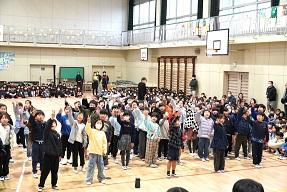 1年生から5年生は、6年生への感謝をこめて言葉や演奏、演技を披露しました。