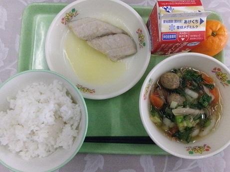ご飯 牛乳 魚のムニエル 肉団子スープ ぽんかん
