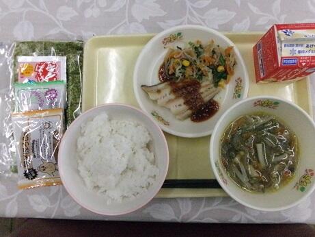 ご飯 さかなのみそだれ しらたきのツルツルいため 沢煮椀 牛乳